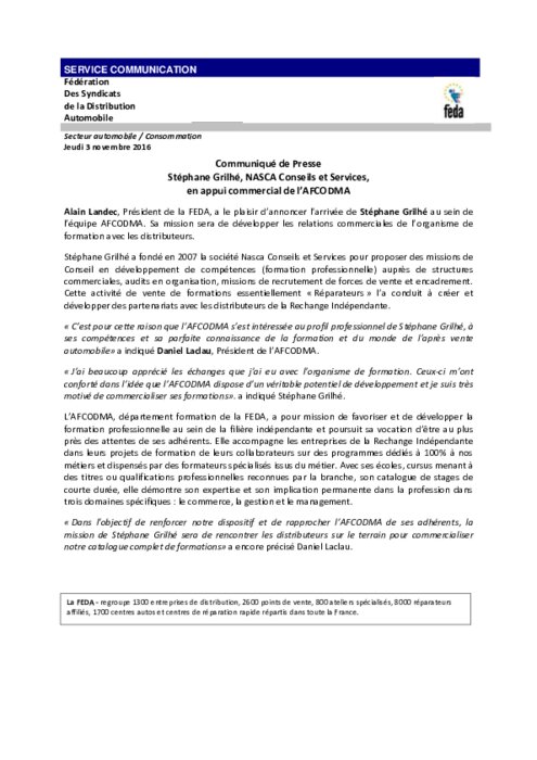 Alain Landec, Président de la FEDA, a le plaisir d’annoncer l’arrivée de Stéphane Grilhé au sein de l’équipe AFCODMA. Sa mission sera de développer les relations commerciales de l’organisme de formation avec les distributeurs.