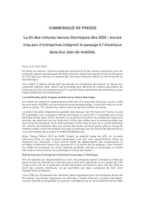 Pour SAMI, la startup climate-tech qui permet aux entreprises de mesurer et réduire leur empreinte carbone, cette mesure est primordiale pour diminuer de manière significative les émissions de CO2 et notamment lorsqu’il s’agit des flottes automobiles des entreprises ou des trajets réalisés par les collaborateurs.