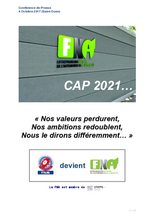 La FNAA devient la FNA et change d’image : c’est la manifestation la plus visible du plan de refondation " CAP 2021 " que la FNAA initiait en juin 2016 lors de ses Rencontres de l’Artisanat Automobile de Reims. Mais ce n’est que la vitrine d’une réforme chargée de mieux entendre et servir les 110 000 entreprises qu’elle représente.