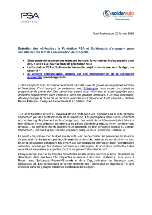 "Pour ces personnes, l’absence de mobilité peut vite avoir de graves conséquences sociales et financières. C’est pourquoi, en partenariat avec Solidarauto, nous avons co-construit ce programme de prévention Ces personnes seront ainsi informées et accompagnées pour entretenir régulièrement leurs véhicules, dans des garages solidaires, à un coût acceptable, afin de prolonger la durée de vie de leurs véhicules et se déplacer en toute sécurité", déclare Karine Hillaireau...