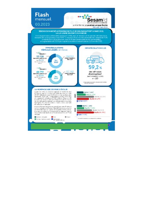 Services 13 avril 2023 - 08:40 Le rebond est là. Le marché est croissant de 21.2 %. Le marché de la LLD va plus loin, avec 26,3 % des immatriculations du marché global, en augmentation de 23,3 % par rapport au nombre d'immatriculations LLD de mars 2022. PDF (233 Ko) Télécharger