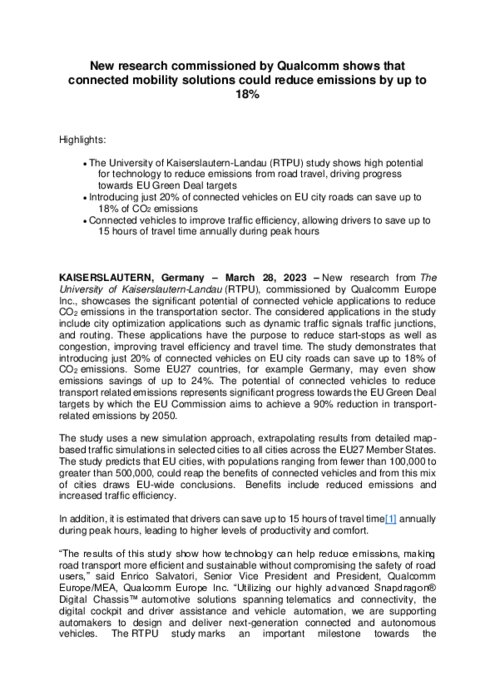 La mobilité intelligente pourrait réduire les émissions de 18 % en Europe (Etude Qualcomm)