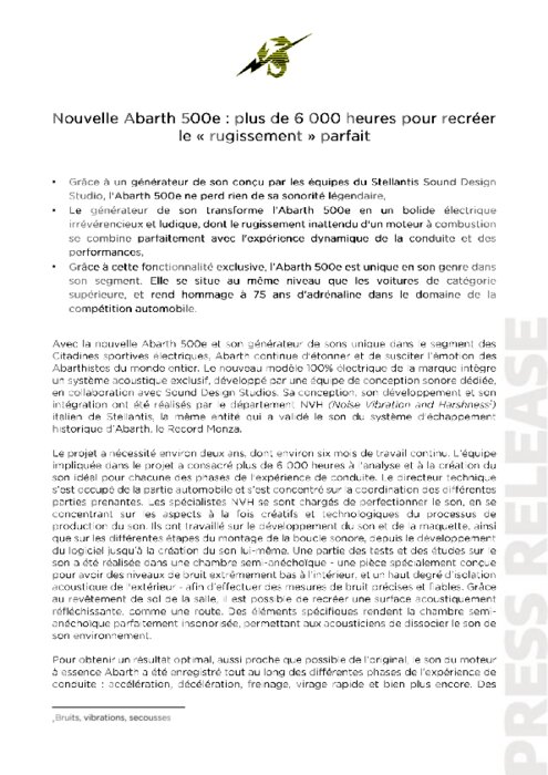 Grâce à un générateur de son conçu par les équipes du Stellantis Sound Design Studio, l'Abarth 500e ne perd rien de sa sonorité légendaire.