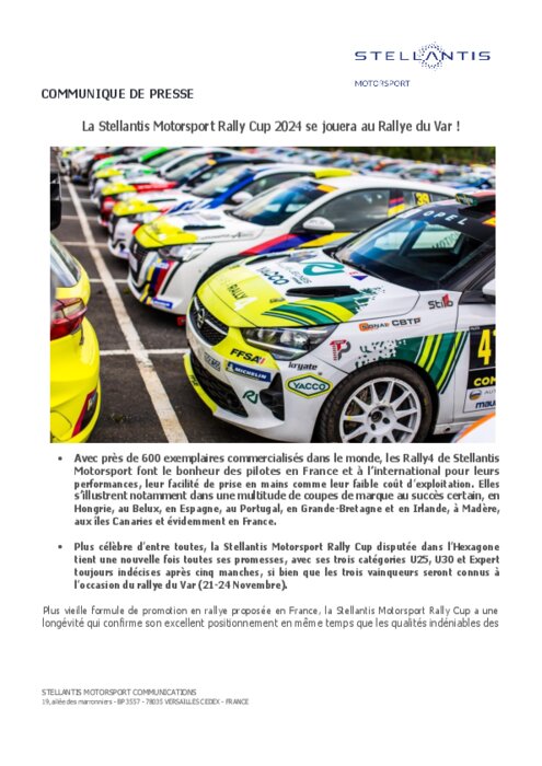Avec près de 600 exemplaires commercialisés dans le monde, les Rally4 de Stellantis Motorsport font le bonheur des pilotes en France et à l’international pour leurs performances, leur facilité de prise en mains comme leur faible coût d’exploitation. Elles s’illustrent notamment dans une multitude de coupes de marque au succès certain, en Hongrie, au Belux, en Espagne, au Portugal, en Grande-Bretagne et en Irlande, à Madère, aux îles Canaries et évidemment en France.