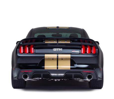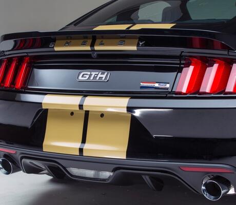 Comme les deux dernières générations, la Ford Shelby GT-H 2016 est instantanément reconnaissable avec sa peinture extérieure noire et ses bandes Racing dorées, qui reprennent les couleurs traditionnelles de Hertz. Chaque voiture arborera également un emblème Hertz Edition sur les ailes avant et des plaques de seuil Shelby GT-H, ainsi qu’un badge numéroté.