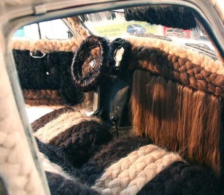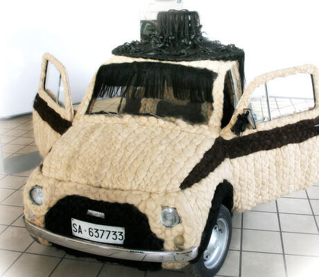 Cette voiture unique est entrée en 2010 dans le Guinness Book of Records en tant que "The most Hairy Car in the World". La styliste italienne Maria Lucia Mugno a entièrement recouvert de cheveux cette Fiat 500 de 1975. Un ouvrage réalisé en 20 jours et pour lequel 100kg de cheveux naturels venant d'Inde ont été utilisés. Les cheveux ont été coiffés et posés sur les surfaces intérieures et extérieures de la 500, y compris sur le volant.