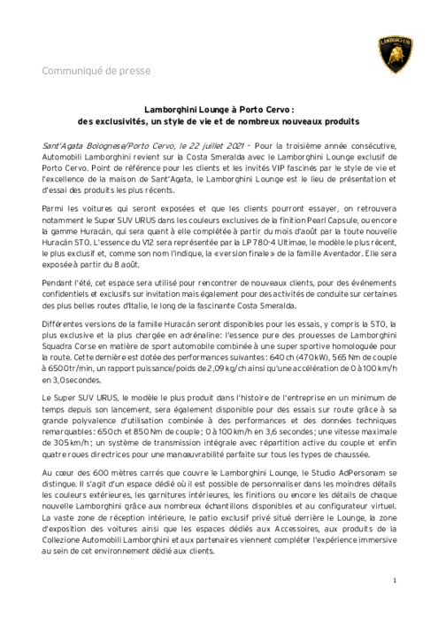 Pour la troisième année consécutive, Automobili Lamborghini revient sur la Costa Smeralda avec le Lamborghini Lounge exclusif de Porto Cervo. Point de référence pour les clients et les invités VIP fascinés par le style de vie et l’excellence de la maison de Sant’Agata, le Lamborghini Lounge est le lieu de présentation et d’essai des produits les plus récents.