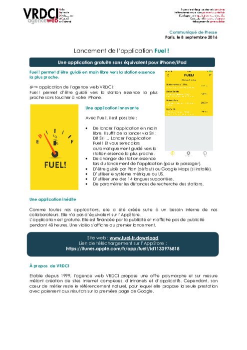 L'application permet d'être guidé en main libre (sans toucher l'iPhone) vers la station service la plus proche. Il suffit d'activer Siri ("Dit Siri") et de dire " Lancer l'application Fuel! ". L'application vous guide alors vers la station service la plus proche.