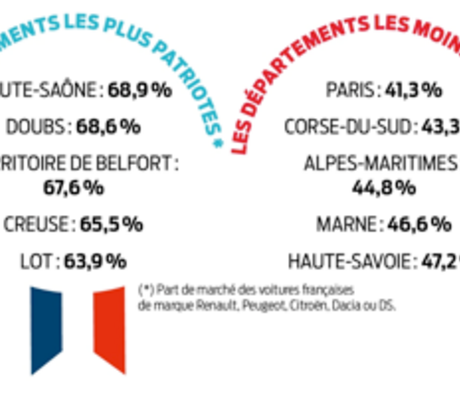 La palme du patriotisme revient à la Haute-Saône. En effet, la part des voitures françaises dans les modèles neufs achetés par les particuliers représente 68,9 %.
