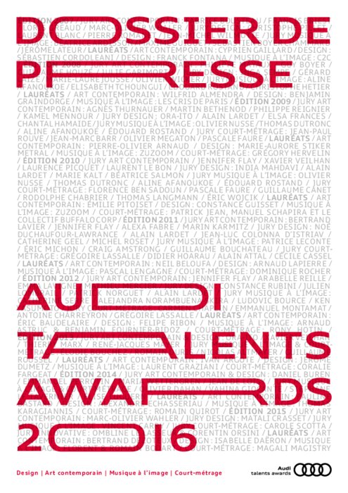 Après une journée de délibérations, le jury, composé de José-Manuel Gonçalves, Constance Guisset, Mathieu Kassovitz, Jean-Baptiste de Laubier (aka Para One), Patrice Lamothe et Jérôme Ruskin, ont annoncé la bonne nouvelle aux vainqueurs : Théodora Barat dans la catégorie Art contemporain, Raphaël Pluvinage et Marion Pinaffo pour le Design, Jérôme Blanquet dans la catégorie Court-métrage et Romain Benitez en Musique à l’image.