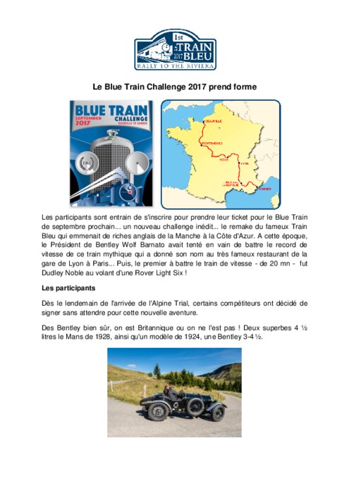 Le départ du Blue Train Challenge 2017 sera donné en septembre prochain. Voici le parcours exceptionnel de ce nouveau rallye qui ne manquera pas de surprendre.