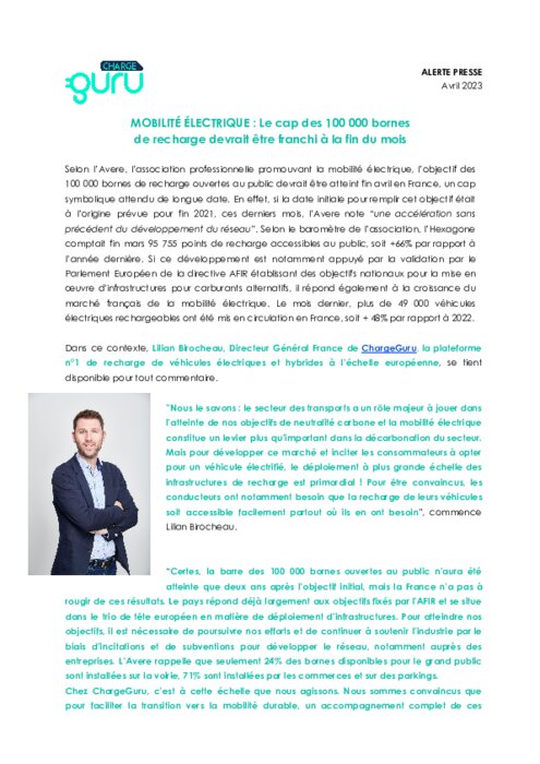 Selon le baromètre de l’association Avere, l’Hexagone comptait fin mars 95 755 points de recharge accessibles au public, soit +66% par rapport à l’année dernière. Si ce développement est notamment appuyé par la validation par le Parlement Européen de la directive AFIR établissant des objectifs nationaux pour la mise en œuvre d'infrastructures pour carburants alternatifs, il répond également à la croissance du marché français de la mobilité électrique