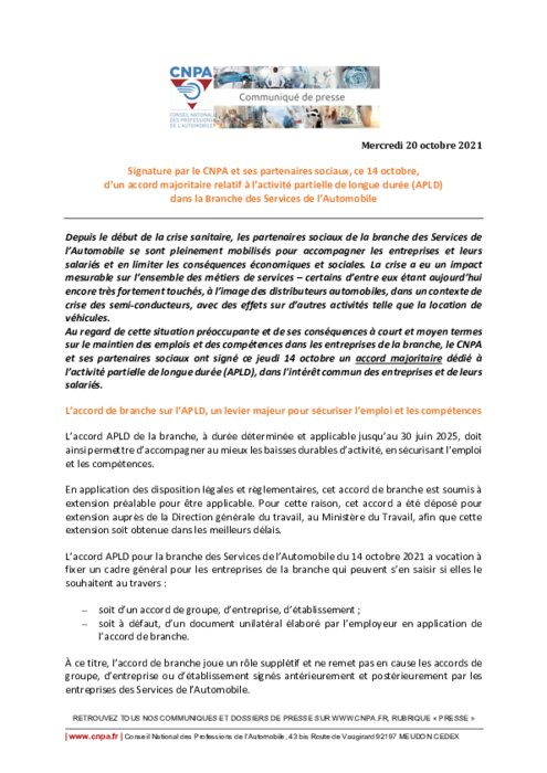 Le CNPA et ses partenaires sociaux signent l'accord APLD