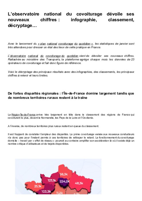 "Les chiffres montrent une nette corrélation entre le nombre de covoiturages et le niveau de subventionnement" par les métropoles régionales, qui peut aller jusqu'à une prise en charge totale du trajet pour le passager, souligne Karos.