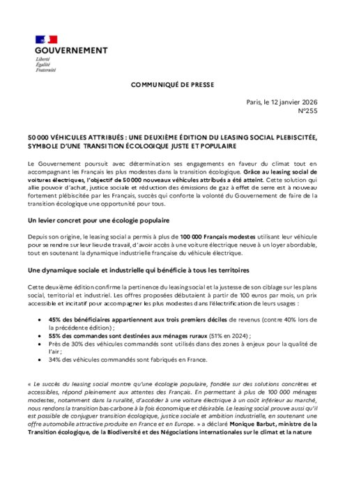 Depuis son origine, le leasing social a permis à plus de 100 000 Français modestes utilisant leur véhicule pour se rendre sur leur lieu de travail, d’avoir accès à une voiture électrique neuve à un loyer abordable, tout en soutenant la dynamique industrielle française du véhicule électrique.