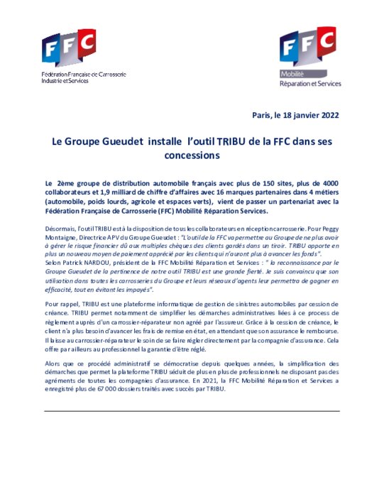 Le Groupe Gueudet installe l’outil tribu de la FFC dans ses concessions