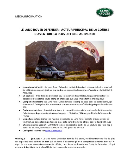 Le Land Rover Defender à la Red Bull X-Alps 2021 (+ teaser)