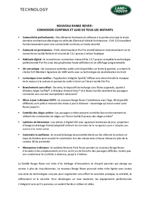Constructeurs 27 octobre 2021 - 11:35 Le nouveau Range Rover, toujours plus élégant, définit le luxe moderne, procure plus de raffinement, donne davantage de choix et de possibilités de personnalisation que jamais auparavant. PDF (746 Ko) Télécharger