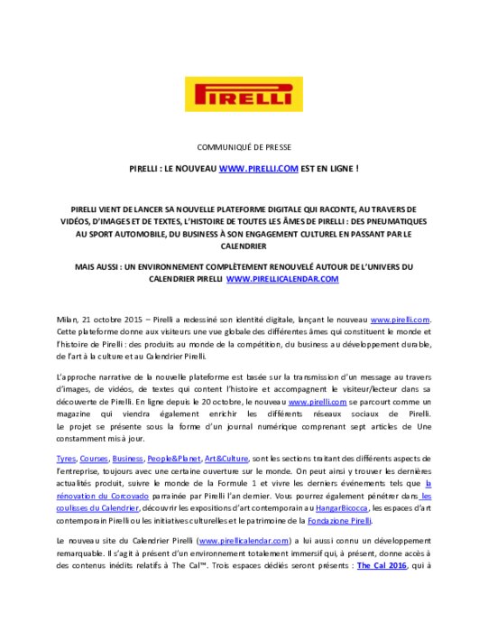 LE NOUVEAU WWW.PIRELLI.COM EST EN LIGNE !