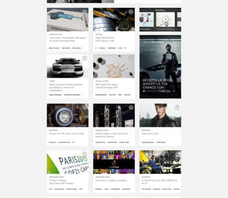 Pirelli a redessiné son identité digitale, lançant le nouveau www.pirelli.com. Cette plateforme donne aux visiteurs une vue globale des différentes âmes qui constituent le monde et l’histoire de Pirelli : des produits au monde de la compétition, du business au développement durable, de l’art à la culture et au Calendrier Pirelli.
