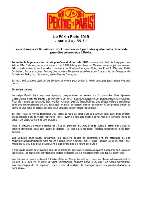 Services 07 mars 2019 - 12:05 Les voitures sont fin prêtes et vont commencer à partir des quatre coins du monde pour être acheminées à Pékin. PDF (756 Ko) Télécharger