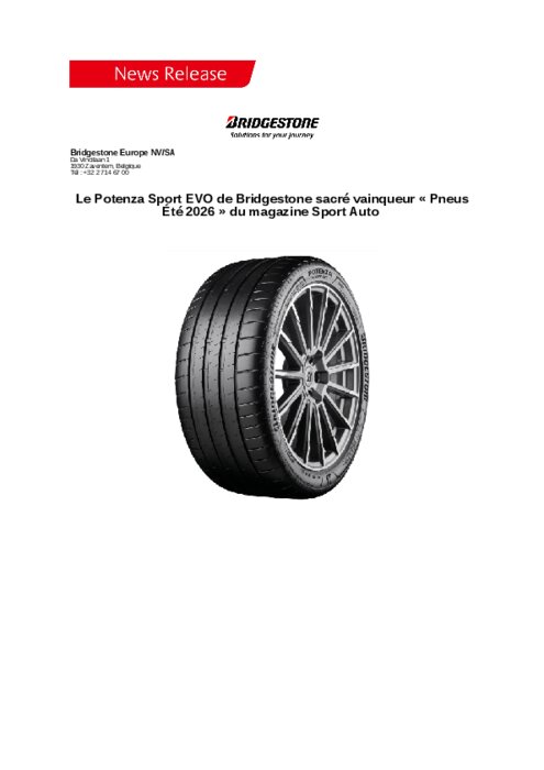 Testé sur une Mazda MX5 en dimension 205/45R17, le pneu ultra-haute performance de Bridgestone faisait partie des sept modèles mis au banc d’essai par Sport Auto. C’est le seul pneu de la sélection à avoir obtenu la mention « Exceptionnel », avec une note de 9,2 points.