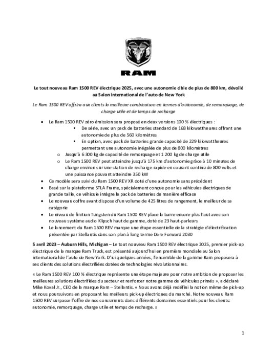Le Ram 1500 REV électrique 2025 dévoilé au Salon international de l’auto de New York