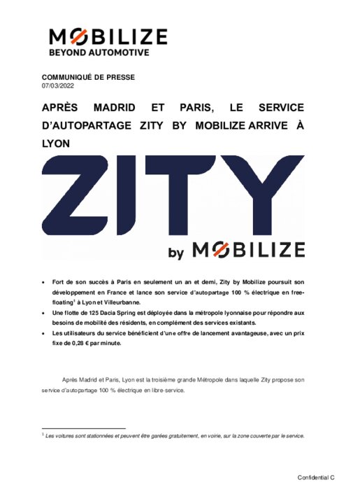 Le service d'autopartage Zity by Mobilize débarque à Lyon