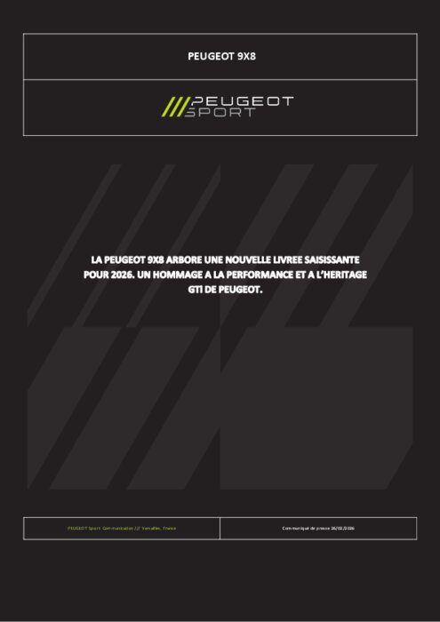 Constructeurs 26 février 2026 - 15:12 Le Team Peugeot TotalEnergies dévoile sa toute nouvelle livrée pour les PEUGEOT 9X8 n°93 et n°94, prêtes à disputer la saison 2026 du Championnat du Monde d’Endurance FIA (WEC). PDF (992 Ko) Télécharger peugeot