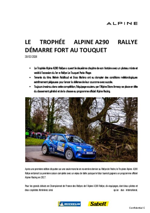 Le Trophée Alpine A290 Rallye a ouvert le deuxième chapitre de son histoire avec un plateau mixte et varié à l'occasion du 1er e-Rallye Le Touquet Paris-Plage.