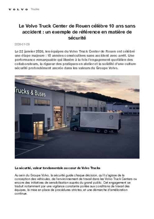 Le Volvo Truck Center de Rouen célèbre ses 10 ans sans accident avec arrêt