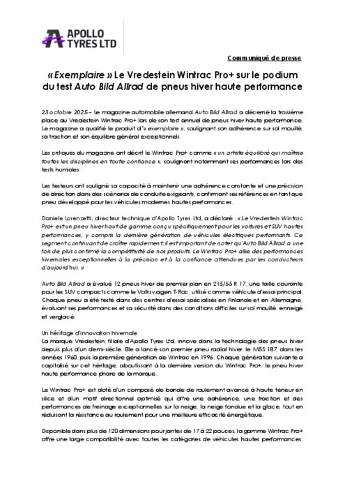 Le Vredestein Wintrac Pro+ sur le podium du test Auto Bild Allrad