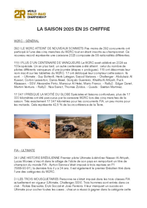 Constructeurs, Services 27 novembre 2025 - 11:27 Pas moins de 392 concurrents ont participé à l’une des cinq manches du W2RC tout en étant inscrits au championnat. Ce nouveau record représente une caravane 2025 composée de 58 nationalités différentes. PDF (31 Mo) Télécharger credit W2rc