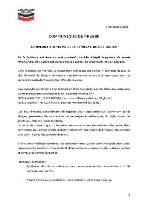 Lechler : Nouveaux vernis pour la rénovation des jantes