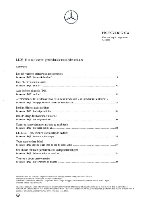 La berline Affaires EQE est la deuxième série de modèles basés sur l'architecture électrique pour véhicules de grande taille (EVA2), après la berline de luxe EQS. Le lancement mondial échelonné aura lieu à la mi-2022. La production a lieu à Brême pour le marché mondial et à Pékin pour le marché chinois.