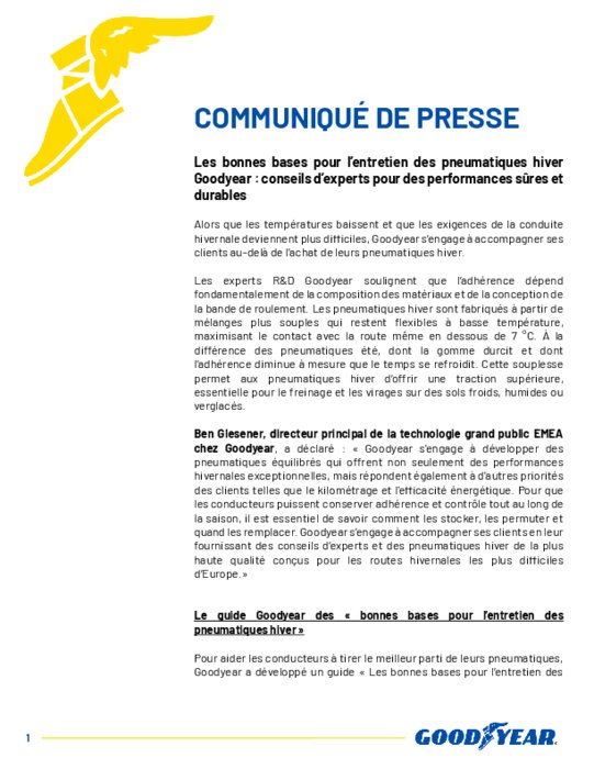 Equipementiers 07 octobre 2025 - 15:52 Alors que les températures baissent et que les exigences de la conduite hivernale deviennent plus difficiles, Goodyear s’engage à accompagner ses clients au-delà de l’achat de leurs pneumatiques hiver. PDF (192 Ko) Télécharger © Goodyear