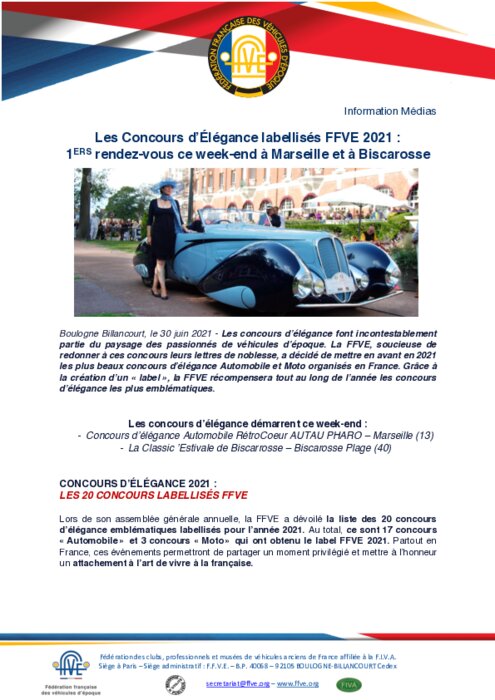 Les concours d’élégance font incontestablement partie du paysage des passionnés de véhicules d’époque. La FFVE, soucieuse de redonner à ces concours leurs lettres de noblesse, a décidé de mettre en avant en 2021 les plus beaux concours d’élégance Automobile et Moto organisés en France. Grâce à la création d’un « label », la FFVE récompensera tout au long de l’année les concours d’élégance les plus emblématiques.