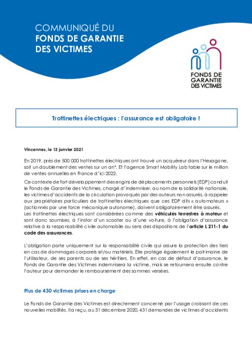 Les trottinettes électriques doivent être assurées (Fonds de Garantie des Victimes)