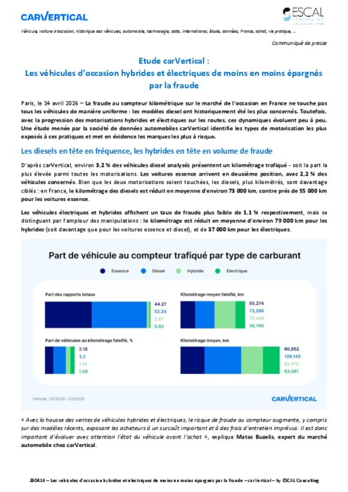 Les véhicules d’occasion hybrides et électriques de moins en moins épargnés par la fraude (Etude CarVertical)