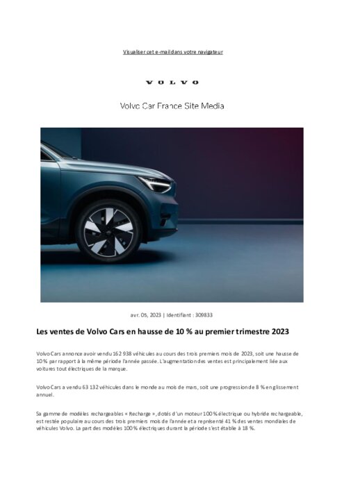 Les ventes de Volvo Cars en hausse de 10 % au premier trimestre 2023