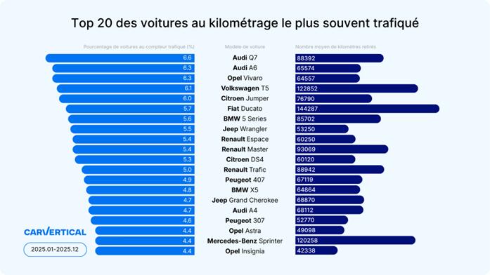 Acheter une voiture d’occasion fiable n’est pas toujours aussi simple qu’il n’y paraît. Sur le marché de la seconde main, certains véhicules affichent un kilométrage manipulé afin d’augmenter artificiellement leur valeur, ce qui peut entraîner un surcoût pour l’acheteur et des réparations imprévues par la suite. Pour la sixième année consécutive, la société de données automobiles carVertical a analysé le marché afin d’identifier les modèles dont le compteur kilométrique a été le plus souvent trafiqué en France en 2025.