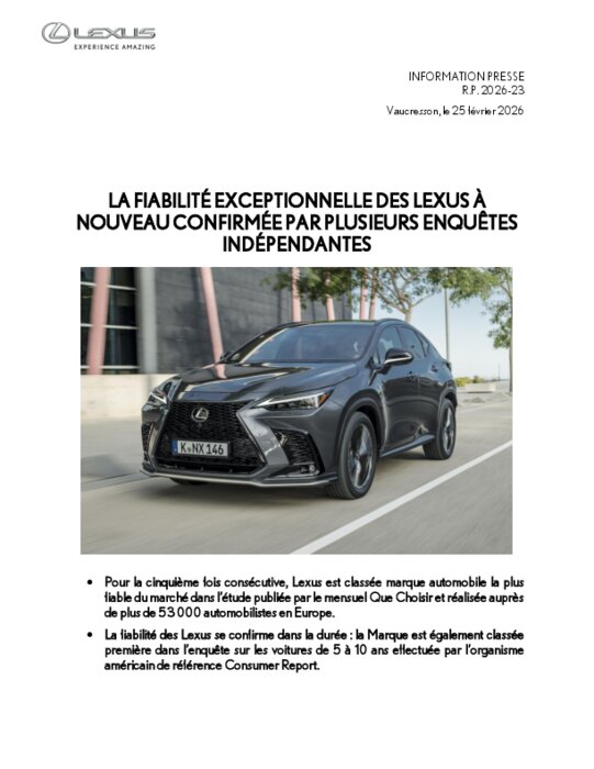 Depuis la création de Lexus en 1989, la fiabilité est une priorité absolue de la Marque afin de garantir à tous ses clients une sérénité totale au quotidien. Aujourd’hui, à l’ère de l’électrification, l’expérience unique de Lexus dans ce domaine fait la différence. Pionnier de l’hybride premium avec le RX 400h en 2005, Lexus a commercialisé plus de 2 millions de véhicules électrifiés dans le monde en deux décennies, acquérant ainsi un savoir-faire exceptionnel.