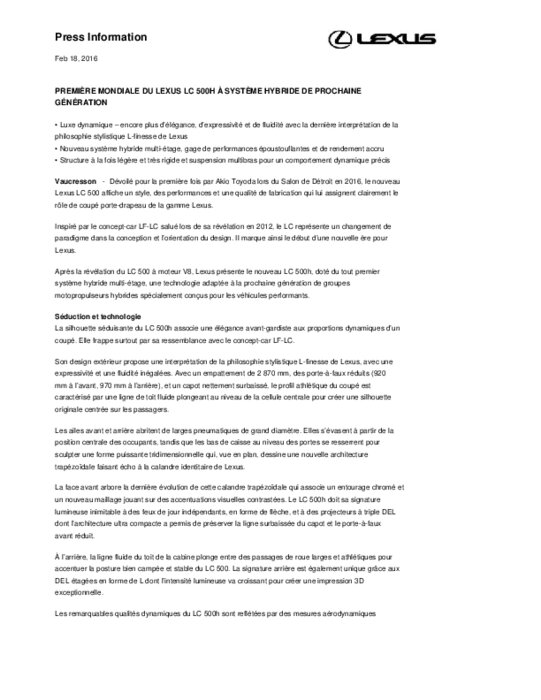 LEXUS LC 500H À SYSTÈME HYBRIDE
