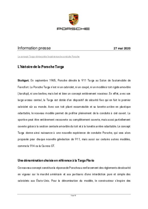 En septembre 1965, Porsche dévoile un nouveau concept de carrosserie au Salon de l’automobile de Francfort : la 911 Targa. Avec elle est née une nouvelle expérience de conduite typiquement Porsche. Découvrez son histoire au fil des 8 générations de Porsche 911.