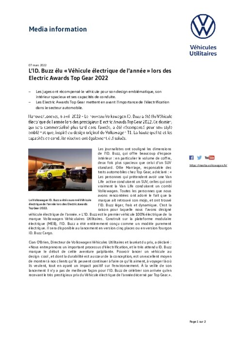 L'ID. Buzz élu « Véhicule électrique de l’année » lors des Electric Awards Top Gear 2022