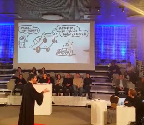 "Nous avons déjà abandonné la souveraineté de la conduite à des chauffeurs de bus ou de train, pourquoi pas alors pour la conduite de voiture? ", lance à l'assistance Vincent Edin, journaliste indépendant, censé défendre farouchement les voitures autonomes.