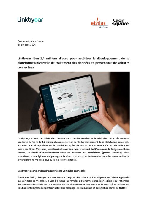 Linkbycar lève 1,4 millions d’euro pour accélérer le développement de sa plateforme universelle de traitement des données en provenance de voitures connectées.