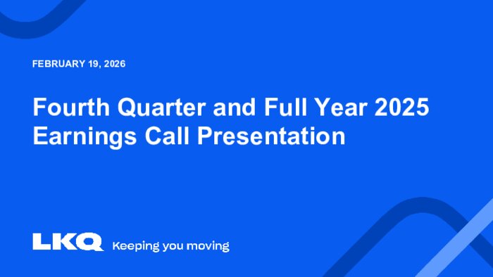 Antioch, TENN (19 février 2026) -- LKQ Corporation (Nasdaq : LKQ) a publié ses résultats financiers pour le quatrième