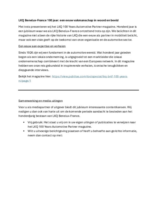 Distributeurs 27 février 2026 - 10:50 Il est non seulement mis en lumière la riche histoire de LKQ, partenaire du secteur de la mobilité depuis un siècle, mais il y est également proposé une vision de l’avenir de l’organisation et du secteur automobile. PDF (62 Ko) Télécharger LKQ