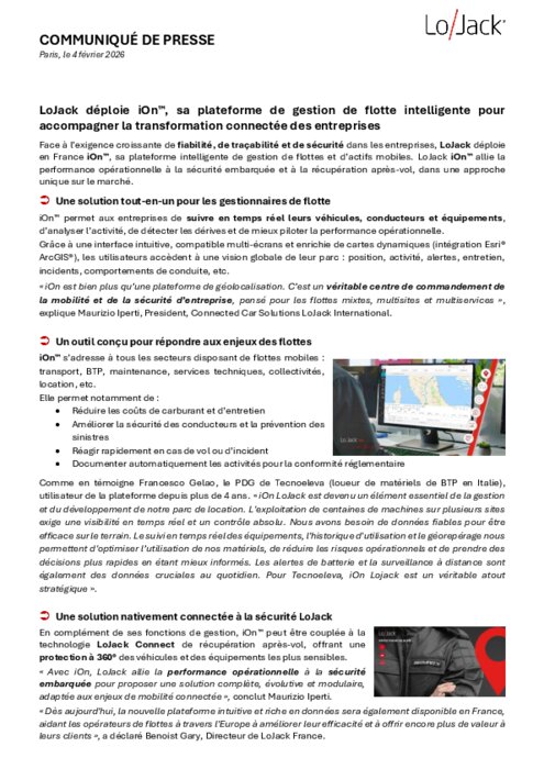 Leader mondial des solutions innovantes de sécurité et de récupération de véhicules volés, LoJack lance aujourd’hui en France iO, sa plateforme cloud de gestion de flottes et d’actifs mobiles, déjà éprouvée dans plusieurs pays européens.